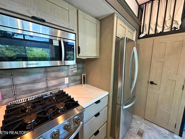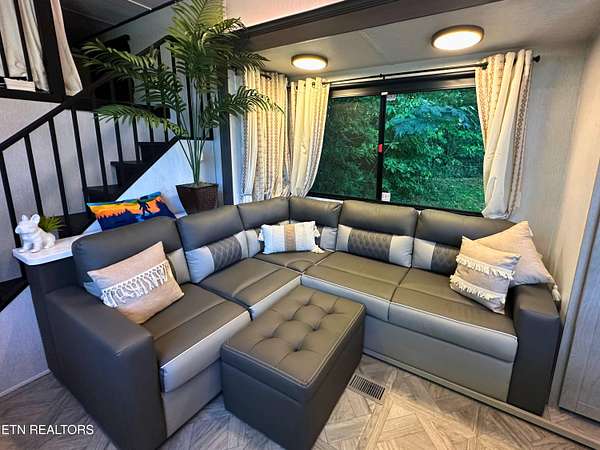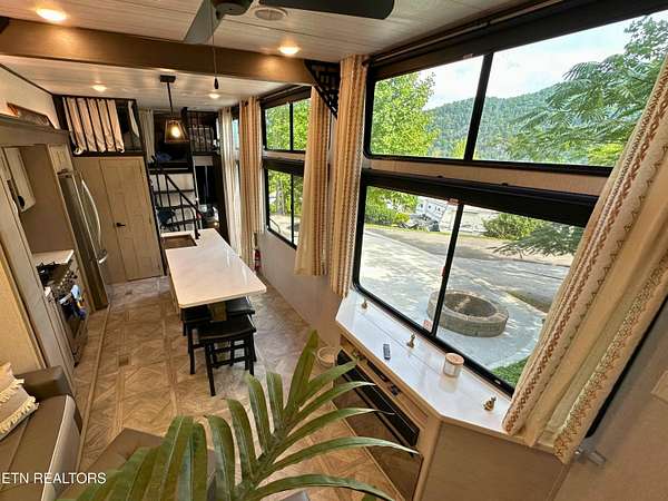 Perched atop Sundown Resort in Townsend, this exceptional lot not only delivers breathtaking mountain views, but a 2024 Forest River Grand Lodge 44VIEW - a luxury destination RV designed for comfort and convenience, conveys with the sale of the lot. With a wide-body design and multiple slide-outs, the Grand Lodge offers residential-style living with modern finishes, high ceilings, and panoramic windows that perfectly frame the surrounding mountain scenery. Inside, you'll find a spacious open-concept living area, a chef-inspired kitchen with full-size appliances, a king bedroom, 2 loft sleeping quarters, and a beautifully appointed bathroom, plus a half-bath, making it the ideal turnkey mountain retreat. The property itself is equally impressive, boasting elegant hardscape features, including a charming stone back wall with options for a soothing fountain or a cozy firepit, creating the perfect setting to relax and entertain. Recent enhancements include a sturdy new retaining wall and an expansive patio, all crafted with significant investment by the Seller. Backed by lush woods, this serene setting provides unique privacy and vibrant wildlife. Sundown Resort is a warm, family-oriented community that hosts festive gatherings and celebrations. Generous amenities include bath houses, two swimming pools, two playgrounds, and pickleball and basketball courts. Reasonable quarterly or annual HOA fees cover essential utilities - including power, water, cable, internet, and lawn care - allowing you to fully embrace the resort lifestyle. Just a mile from the Great Smoky Mountains National Park, outdoor enthusiasts can enjoy endless opportunities for hiking, fishing, and wildlife observation. Conveniently located near Maryville, Sevierville, Pigeon Forge, and Gatlinburg, Townsend is a peaceful retreat renowned for its natural beauty. Please note that a generator may be required from late November through March, as utilities are shut off during this time, and many owners utilize their lots year-round. Potential Buyers to verify all information.