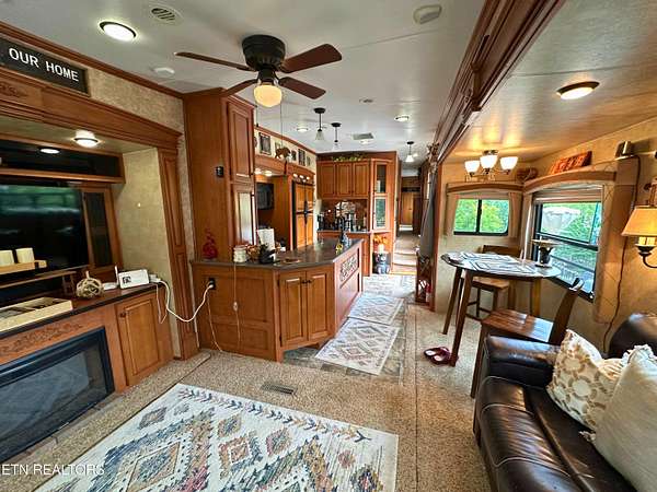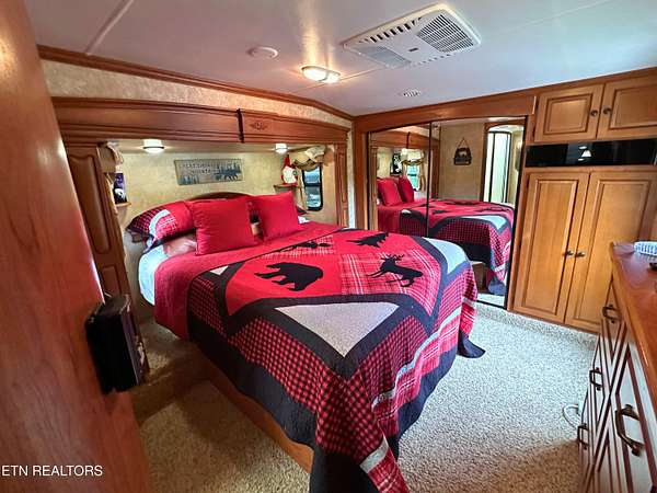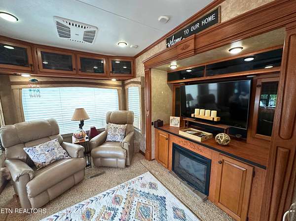 Welcome to your ultimate Smoky Mountain retreat-where jaw-dropping views and resort-style living await just one mile from the entrance to the Great Smoky Mountains National Park. Whether you're seeking a weekend escape, a seasonal getaway, or the mountain lifestyle, this remarkable property offers it all with easy access to Gatlinburg, Pigeon Forge, and the scenic beauty of Townsend. This sale includes a Cardinal Forest River fifth wheel with four expansive slide-outs, a true upscale comfort. Designed for long-term enjoyment, this custom coach features a stunning full-body paint package, Armor roofing with a transferable lifetime warranty, and a gleaming clear coat finish. Dual Coleman 15,500 BTU air conditioning and heating units, paired with zone-controlled thermostats, provide exceptional comfort. Step inside to discover a refined interior boasting the Cardinal LX package, highlighted by rich wood cabinetry, cedar-lined closets, and a spacious, residential-style bathroom with elegant fixtures. The inviting living area includes a sofa that converts into an additional sleeping space for guests, while a central vacuum system adds everyday convenience. This camper isn't just a place to stay-it's a home to relax and unwind in luxury.. The lot itself is a beautifully designed masterpiece. Professionally landscaped with flagstone accents, and custom concrete, the outdoor space blends seamlessly with its natural surroundings to create a tranquil and private escape. Located in a vibrant gated community that caters to both leisure and recreation, owners enjoy access to two swimming pools, multiple bathhouses, playgrounds, a basketball court, pickleball court, and both indoor and outdoor gathering spaces. Quarterly HOA dues cover all utilities-including electric, water, cable, and internet-as well as mowing, grounds maintenance, and trash removal, giving you a truly turn-key experience. The camper conveys with the purchase of the lot, making this an exceptional opportunity to step directly into Smoky Mountain living. All you need to bring is your suitcase and s'mores supplies-everything else is already in place. Generator required for use between December and March. Buyer to verify all information, including community restrictions and items to convey with the sale.