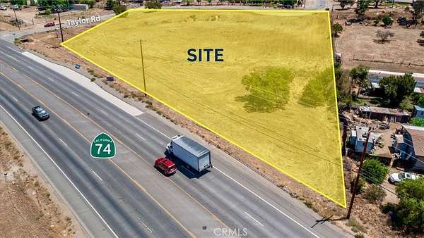 Prime 2.63 Acre Commercial Parcel on State Highway 74. This property has HIGH VISIBILITY with traffic counts exceeding 25,000 cars per day on the highway. Great potential for businesses as the land use designation for the county of Riverside shows COMMERCIAL RETAIL (CR). This property is also flat and easily developable. Very convenient location for businesses and commuting as you are on the main highway and can get to Riverside, Perris, Moreno Valley and other cities very quickly, as well as a few minute drive from the 215 FWY and 15 FWY. You also have DUAL ACCESS points for ingress/egress for work vehicles, customers etc via Taylor Rd on the backside of property. WATER UTILITIES are readily available on both Hwy 74 and Taylor Road with EMWD, as well as edison POWER POLES existing on the street. Ideal for retail, service businesses, or commercial strip centers, this site presents a rare opportunity to capitalize on a high-traffic corridor in a rapidly growing market. Buyers to satisfy themselves as the the validity of any and all marketing information.