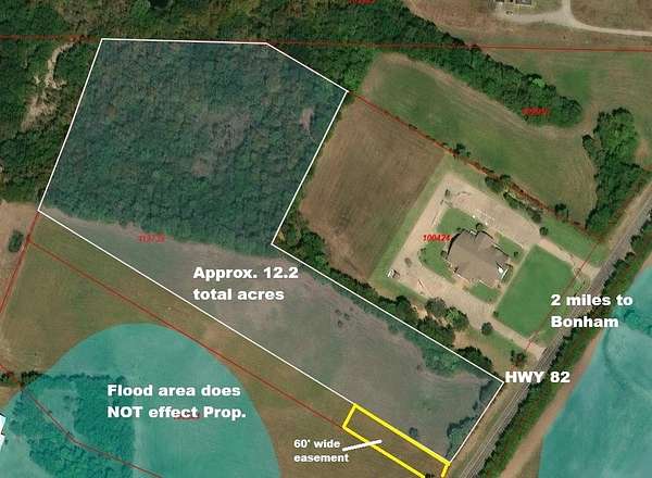 Est $1,898/moBeautiful Half Treed and Half Open Approx. 12.2 Acre Tract to be surveyed out of larger tract. Treed area is heavily wooded with many large mature trees to carve out your desired Home Location. Property is known to have Deer Crossing on a Regular bases and would be a Great place for a Barndominum or Country Style Home. Owner is a Licensed Texas Real Estate Agent. Culvert will have to be put in at Highway 78, Water Provider is Southwest Fannin SUD and has great water pressure.