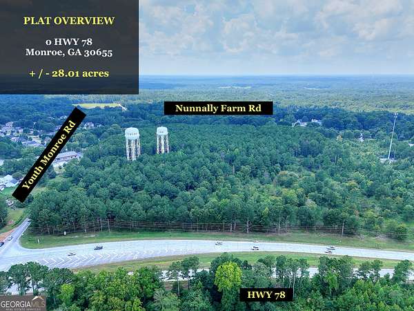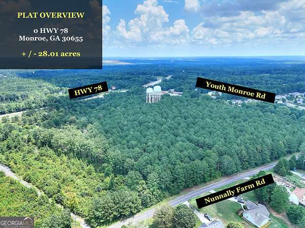Est $20,356/moPROPERTY IS IN GREAT LOCATION, CURRENTLY ZONED FOR 14 BUILDING LOTS BY CITY OF BETWEEN AND 14 ACRES ZONED B-12. ROAD FRONTAGE ON HWY 78, YOUTH MONROE, AND NUNNALLY FARM. RED LIGHT COMING SOON.