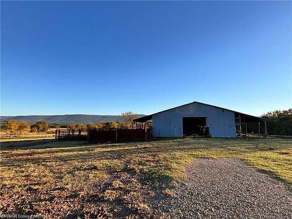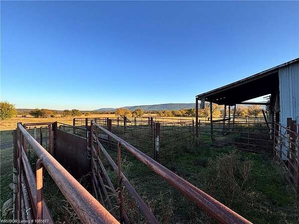 Land with Scenic Views & Agricultural Potential - 77.5+/- Acres Bullets: o Expansive 77.5+/- acre property with panoramic views of Poteau and Sugarloaf Mountain o Features include two ponds, a corral, an older hay barn, and 2 barns with two decorative silos o Multiple potential building sites available for homes or farm structures o Currently used for cattle grazing with recorded restrictions against commercial poultry/hog farming o Includes utility infrastructure with internet provider located on the silos o Ideal for rural living, cattle operations, or recreational use with privacy and scenic appeal o Entry by permission only for safety and respect of property rights. Some pictures may show more than the actual land for sale. The seller also has a home & an additional 20t/- acres for sale. Do not enter w/o an appointment, cattle farm.