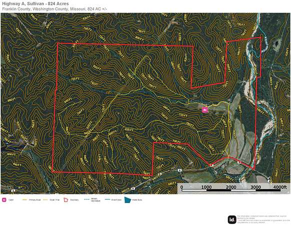 More acreage added—now 824+/- acres! Enjoy massive gravel bars on the highly sought-after Indian Creek, with over a half mile of creek frontage and property on both sides. Also new to this listing is approximately 40 acres of tillable land, making an already great hunting property even better. With expansive ridgetops running the length of the property and over six miles of established trails, the land is remarkably accessible. Multiple creeks meander through the landscape, providing year-round natural water sources for wildlife. Located just 15 minutes from Sullivan and less than 90 minutes from St. Louis, this extraordinary 824+/- acre tract is a dream come true for deer hunters and outdoor enthusiasts. Several parks and conservation areas are nearby, including Meramec State Park, which offers public access to the Meramec River. Schedule a showing today!