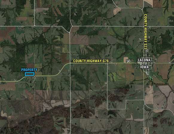 Presenting this exceptional 12.87-acre m/l building site located along paved County Highway G76, just 3 miles west of Lacona in Warren County, Iowa. This rare offering provides the perfect opportunity to build your dream home in a peaceful country setting with no restrictive covenants. Ideally positioned less than 20 minutes from Indianola and just 45 minutes from the Des Moines Metro, the property combines privacy, accessibility, and stunning views of the surrounding countryside. Rural water and electricity are available at the road, making it easy to start your build. Don't miss the chance to own this affordable and scenic acreage-an ideal setting to create your forever home with both seclusion and convenience.