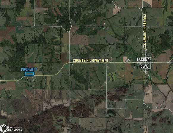 Presenting this exceptional 12.87-acre m/l building site located along paved County Highway G76, just 3 miles west of Lacona in Warren County, Iowa. This rare offering provides the perfect opportunity to build your dream home in a peaceful country setting with no restrictive covenants. Ideally positioned less than 20 minutes from Indianola and just 45 minutes from the Des Moines Metro, the property combines privacy, accessibility, and stunning views of the surrounding countryside. Rural water and electricity are available at the road, making it easy to start your build. Don't miss the chance to own this affordable and scenic acreage-an ideal setting to create your forever home with both seclusion and convenience.