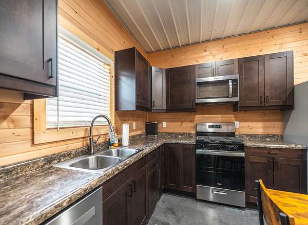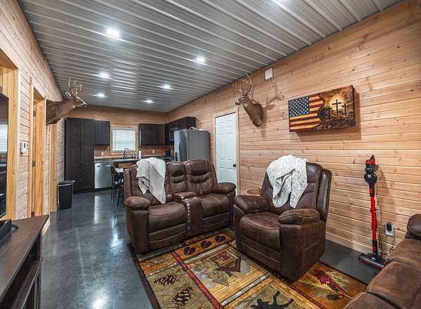 A cozy, pine-lined cabin completes the property, featuring 2 bedrooms and 1 bathroom--perfect for weekend getaways, hunting camp, or a quiet retreat. Warm wood interiors give the cabin a classic lodge feel, providing a comfortable place to relax after a day in the woods.