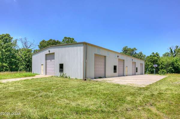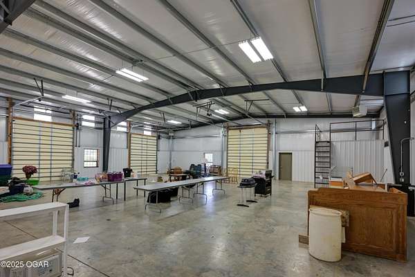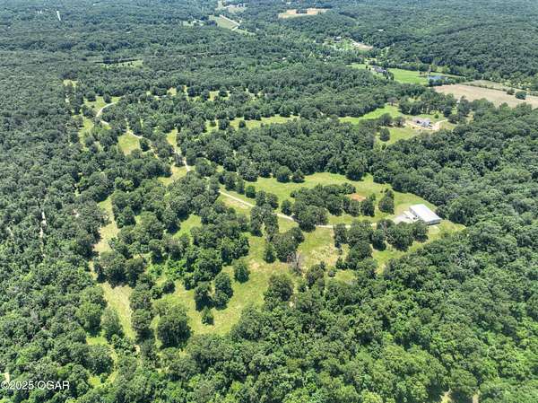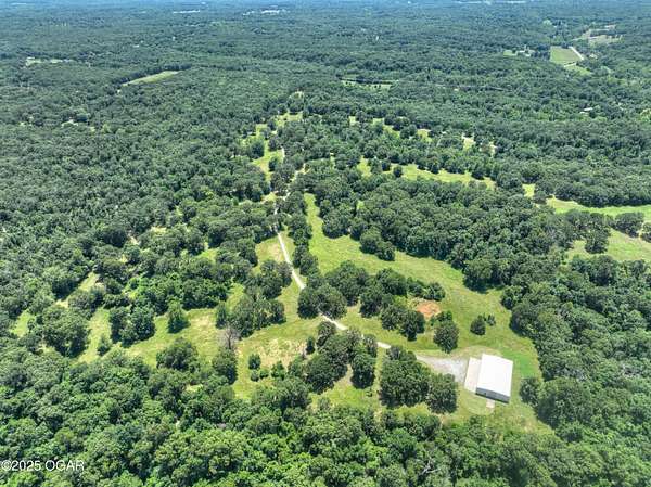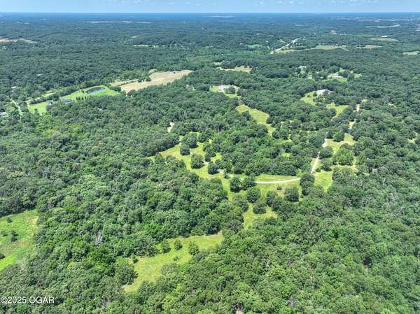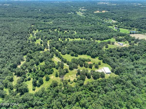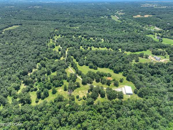An incredible opportunity awaits on this stunning 93.49-acre tract nestled in highly sought-after South Joplin, just minutes from hospitals, shopping, and dining. A long, private, tree-lined driveway leads to a well-built 6,000 sq ft shop building, offering endless potential and surrounded by rolling hills, a large pond, and abundant wildlife. The shop features 6 oversized RV-height overhead doors with openers, double-insulated walls, insulated windows, and 220V electric. It's fully equipped with a spacious bathroom including a double vanity and shower, water well, septic system, and buried electrical lines for a clean aesthetic and added safety. The building is heated and ready for a variety of uses-ideal for transforming into a barndominium, building your dream estate, or developing a premier executive subdivision. Whether you're looking for privacy, development potential, or a turnkey setup to create your own private retreat, this rare South Joplin offering delivers on all fronts.