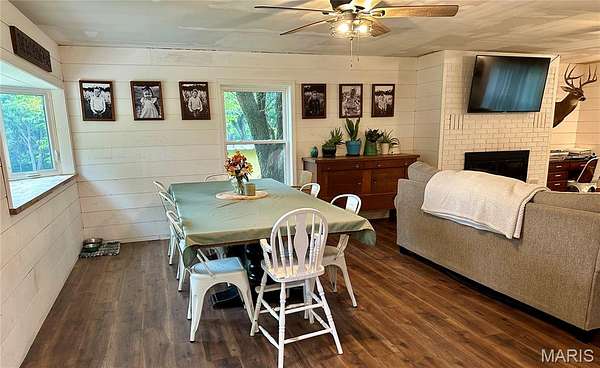 (subdivide of larger parcel) Beautifully updated 3-bedroom, 1-bath home situated on approximately 7+- acres with 1,612 sq ft of living space. Recent upgrades include new windows, doors, siding, new HVAC, updated electrical, and water-resistant flooring throughout. The open-concept kitchen, dining, and living area features a wood-burning fireplace and real wood shiplap walls. The kitchen is equipped with a vintage apron-top farmhouse sink, vintage electric range, double ovens, and a pantry. Ceiling fans are installed in every room for added comfort. The dining room showcases a large bay window and opens directly to a spacious concrete patio--perfect for outdoor entertaining.Exterior features include 2"x4"x4' welded wire fencing along the front of the property with a gate, several mature trees, fruit trees, a chicken coop, a garden shed, and a larger outbuilding for storage. An 825 sq ft foundation has already been poured for a garage, primary suite, or great room addition.A second home on the property is currently used as an income-producing rental, offering 4 bedrooms, 2 bathrooms, and a detached garage.