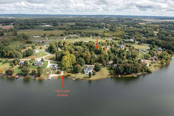 Go across the bridge on N. State St. in Hart. Turn left on Hill N Dale and follow around to N Hill N Dale Dr. Turn right to property on the right.
