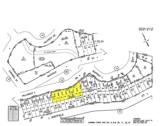 Est $444/moOcean & Canyon View 8 lot parcel (.32 acre+-) includes #520 on CCSD water wait list. Drive up Hillcrest Dr past Nitt Witt Ridge and just about to Suffolk St & you'll find this large property on the edge of Pine Knolls Estates.. Bring your imagination to one day build your Big Sur Style Treehouse in this unique location overlooking a pine forest canyon. Paved street, walking distance to West Village and local restaurants. No homes on either side provide a private sanctuary among the trees. Offered for $55,000.