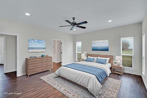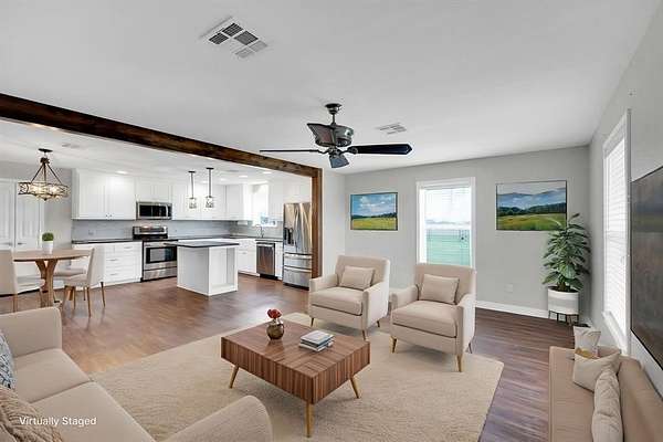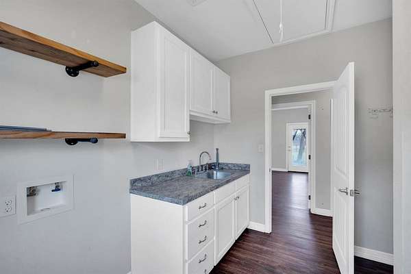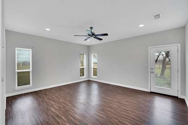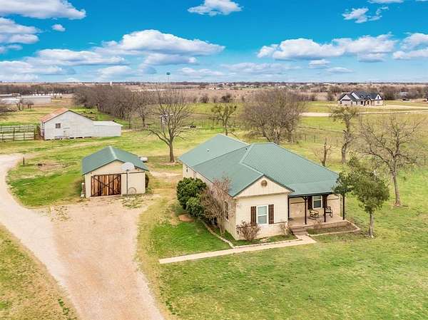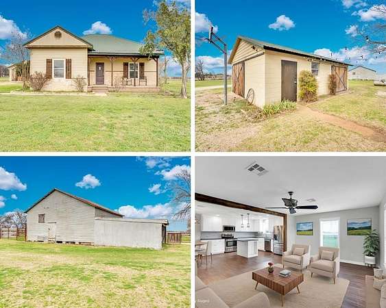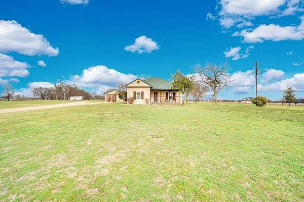 Charming 3-bedroom, 2.5-bathroom farmhouse that sits on 7 ag exempted acres outside Hillsboro city limits! These 7 acres are cross fenced and have an impressive 900 square foot barn ideal for workspace or livestock operations. This 2,035 square foot home underwent major renovations including a new roof, rewiring, and updated plumbing in 2017. In addition to these updates, a slab was added for additional square feet of living space. The home features an open floor plan from the kitchen to the living and dining area, creating ideal space for entertaining. Laminate flooring flows throughout, and decorative lighting adds character. The kitchen showcases granite countertops, a farmhouse sink, stainless steel appliances, and refrigerator. The master bedroom includes a huge walk-in closet with convenient access to the yard. The master bath features dual sinks, a separate tub and shower for luxury bathing options. The additional bathroom has a shower-tub combo. A separate laundry room includes a sink, cabinets for storage, hanging area, and access to the garage. Outside, enjoy a covered front porch perfect for relaxing. The property includes a standalone 600 square foot 1-car garage. These 7 acres and substantial outbuildings offer room for animals, hobbies, and country living!