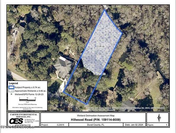 Exit I-295 West at Exit 3 Old St. Augustine Road, Turn Right onto Old St. Augustine Road heading East, Turn Left onto San Jose Blvd (SR13) heading South, Continue approximately 3 miles South, Turn Left onto Julington Creek Road, Road will curve into Hillwood Road, Continue straight on Hillwood Road and the vacant land, 0 Hillwood Road will be on the Left before the end of the cul-de-sac.