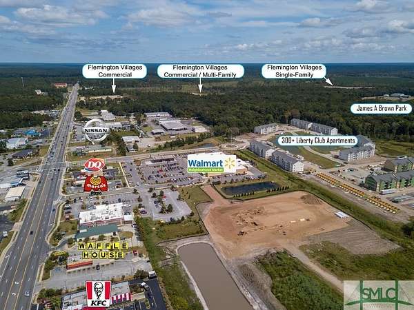 PRESENTED IS A MASTER PLANNED DEVELOPMENT ALREADY ZONED PUD IN GROWING LIBERTY COUNTY/FLEMINGTON GA, JUST A FEW FEET FROM THE HINESVILLE CITY LIMITS. THE AVAILABLE PROPERTIES IS SERVED BY AN ENTRANCE BLVD, SUPPLYING WATER/SEWER/POWER/INTERNET/TELECOM. EXPANSIVE ROAD FRONTAGE OF THE BUSIEST STATE HWY IN LIBERTY AND BOASTS 30,000 AADT AND HAS BEEN APPROVED THROUGH GDOT, THE GDOT HAS ALSO PROVIDED A LOI FOR A REDLIGHT AT INTERSECTION ONCE THE WARRANTS ARE MET. ALL AVAILABLE PROPERTIES EAST OF THE CANAL WILL BE PROVIDED ACCESS TO THE MASTER DETENTION AREA WHICH MEANS NO ONSITE DENTENTION. THE ENTRANCE ROAD, DECEL LANE, SIGNAL ETC. ARE ALL FUNDED THROUGH THE SELLER. THE DEVELOPMENT IS A PLANNED TO BE PEDESTRIAN FRIENDLY AND WILL PROVIDE AN 8' SIDEWALK FROM HIGHWAY 84 TO THE RESIDENTIAL AREAS. THE DEVELOPMENT HAS OVER 600 SFR HOMESITES PLANNED AND ALSO HAS 40+/- ACRES PLANNED FOR MULTI FAMILY AND DEVELOPMENT HAS THE AVAILABILITY TO CONNECT TO MORE THAN 1000 MORE EXISTING RESIDENTIAL UNITS.