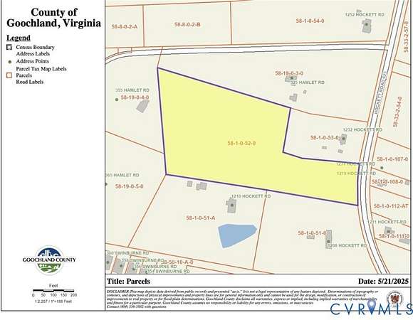 64W to To RT.288 south to Chesterfield. Tuckahoe Creek Exit 740 West. Right on Hockett Road. Lot is on the left. Property is located between 1208 Hockett Road and 1232 Hockett Road.