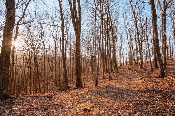The property itself is composed of 50 rolling acres of hardwoods, which create great privacy and recreational opportunities. The approach to the homesite, a half-mile drive beneath the protected canopy of hardwoods, builds anticipation for the dramatic reveal at the top of the ridge.