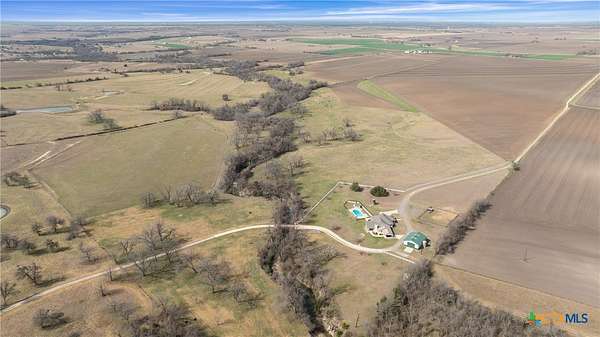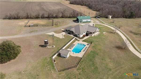 Darrs Creek Ranch is a rare offering just west of Holland, Texas-an exceptional, highly improved ranch featuring over a mile of Darrs Creek frontage, diverse topography, and a compelling blend of agricultural productivity, recreation, and future development potential. Ideally located less than one hour from Austin, two hours from Dallas-Fort Worth, and under three hours from Houston, the property lies directly in the path of Central Texas growth-just 8 miles from IH-35 in Salado and 21 miles from Taylor, home to the Samsung semiconductor campus. The land offers a balanced mix of fertile farmland, improved pasture, and gently rolling terrain with approximately 40 feet of elevation change. Currently supporting cattle, hay, and crop production, the ranch is well-equipped with extensive cross-fencing. Natural features include multiple stocked ponds, mature pecan trees, and excellent wildlife habitat supporting deer, dove, and other native species. Water is a defining attribute, with over one mile of Darrs Creek complemented by several well-built ponds enhancing both recreational appeal and agricultural functionality. Improvements are thoughtfully designed, including a single-story residence with high-end finishes and expansive outdoor living areas suitable for full-time living or weekend enjoyment. Select areas of the ranch are well-suited for agricultural or equestrian use, while other portions offer prime homesites with long-range views and creek frontage-ideal for a legacy estate or phased residential development. With proximity to Holland ISD and nearby infrastructure, Darrs Creek Ranch presents a compelling opportunity for investors, developers, or end users seeking a versatile Central Texas property.