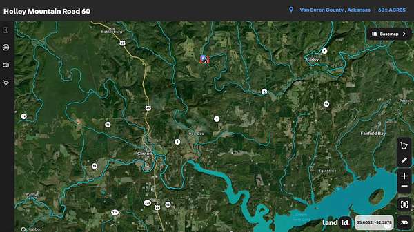 Discover the natural beauty and recreational potential of this 60-acre timber tract located just 5.3 miles northeast of Clinton, Arkansas. Comprised of two scenic hardwood ridges and split by a wet-weather creek that feeds directly into Weaver Creek, this property offers a rare combination of seclusion, water access, and wildlife habitat.