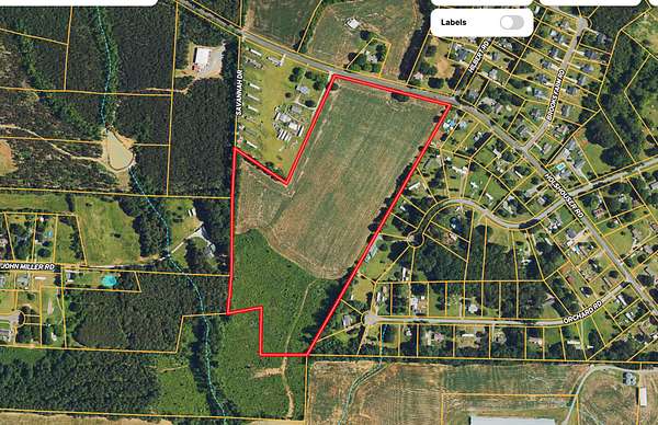 The listing is made up of 29.64 total acres. With over 740 feet of road frontage, access is super easy and there is county water and sewer approximately 230 feet away. Approximately 21 acres is currently being farmed by a local farmer. The yearly lease payment is $1575 and renews each October. The rest of the land is made up of short pine trees and thickets. This section was timbered off years ago and the replanted growth is steadily growing back which will be a long term investment once the timber is harvestable again.