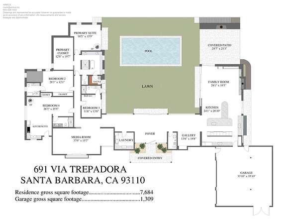 A modern masterpiece in the heart of Hope Ranch, newly built in 2022 and remodeled in 2024, this home showcases chic, contemporary design. Single-level living and an open floor plan seamlessly connect interiors to lush, landscaped outdoor spaces. Two second-level spaces, ideal for fitness and an entertaining lounge, offer a unique retreat. Walls of glass open to a serene courtyard with pool and spa, blending beautifully with the surrounding greenery. The chef's kitchen and spa-like baths feature sleek, refined finishes, while radiant heat and smart home technology elevate everyday living. A spacious primary suite offers a true retreat. With Hope Ranch beach access a short distance away, this is Santa Barbara luxury at its finest.