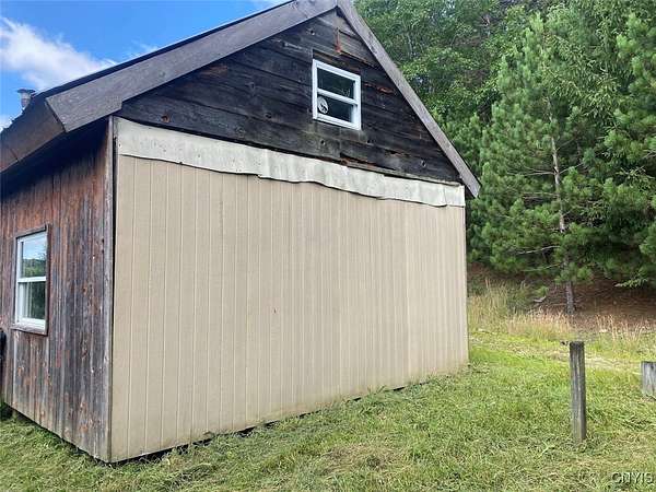 Great off-grid cabin with hilltop views on 19 acres located in Bolivar NY, Allegany County. A deeded easement driveway leads through the forest and brush to this off-grid cabin offering peace, privacy, and stunning panoramic views of the surrounding hilltops. With fall just around the corner, this is the perfect spot to take in the changing colors of the leaves. The cabin has a covered front porch and an open living and dining area. A wood stove and a wall-mounted propane furnace provide heat. There is one bedroom on the main floor and a loft for additional sleeping space. The interior is unfinished offering room for updates. A portable outhouse sits a short distance from the cabin. The location is quiet and set back from other properties. There are signs of whitetail deer and other wildlife throughout making this property a solid choice for hunting. The cabin is being sold as-is. Surface rights convey.