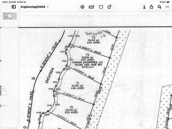 Enter through Escondido's Welcome Cottage, make an immediate left at the roundabout onto La Serena Loop, continue straight onto Encantada. It will curve to the right and Lot 71 will be on the right.