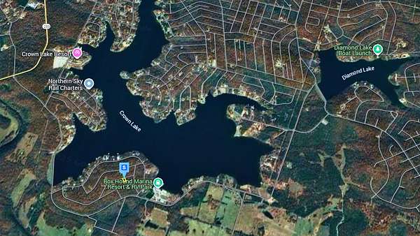 Local rental market advantages include proximity to Box Hound Marina Resort & RV Park, which brings vacation rental demand, Crown Lake Resort creating tourism traffic, Papa Dick's Pizza providing tenant dining convenience, Crown Lake offering recreational appeal for renters, Horseshoe Bend Airport bringing business travelers, Vito's Asian Kitchen adding dining variety, and Our Neighborhood Fresh Market supplying tenant essentials.