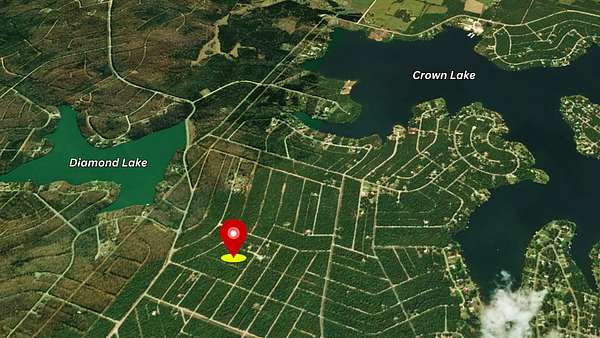 This 0.29-acre residential lot sits in the heart of Horseshoe Bend, Izard County, Arkansas, positioned between Diamond Lake and Crown Lake, both within easy walking distance.