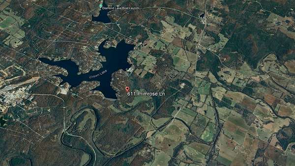 The land is situated in a peaceful, well-maintained lakeside community just 2 minutes from Crown Lake and very close to Diamond Lake, with additional nearby recreation at Strawberry River, Pioneer Lake, Crown Lake Pier, and Turkey Mountain Golf Course.