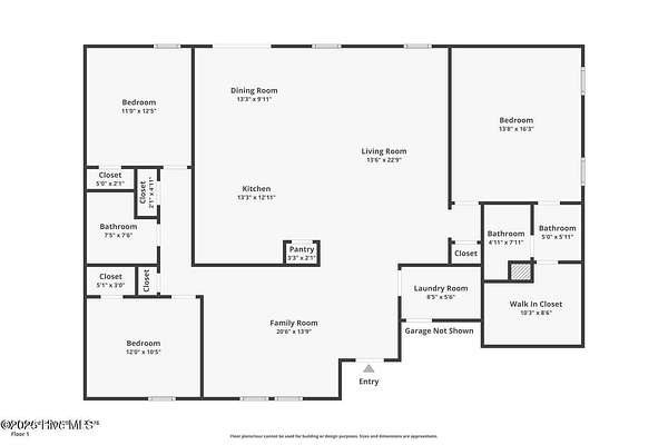 - Bathroom x 2, Bedroom x 3, Dining Room, Laundry Room x 2