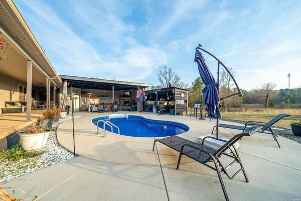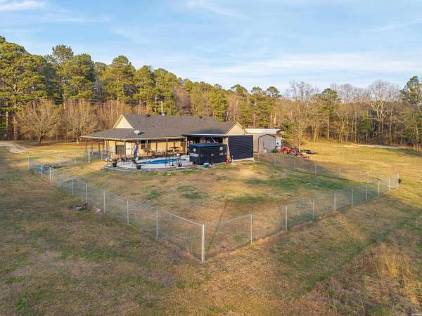 Stylish, classy, beautiful country living at its best! This gorgeous home with 18' ceilings, designed concrete flooring, large rock fireplace, open floor plan on the inside, then opens up to a dreamy outdoor kitchen area with another fire place and a tv for entertaining guest who can also enjoy the welcoming in-ground, heated, salt water pool. The detached heated/cooled garage is a perfect "man cave" for any car enthusiast to spruce up your classic beauty or store your newest collection. All of this sits on two spacious acres to enjoy any other outdoor activities or to park your boat or RV and close to Lake Hamilton School.