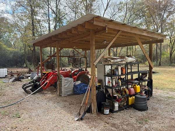 Improvements include a well, power, pole barn, and camper hookups, making it ready for immediate use as a weekend getaway or hunting camp. Several miles of internal roads connect the property, leading to multiple established food plots, shooting houses, and treestands. The property's layout and timber mix provide excellent wildlife habitat for deer, turkey, and small game.