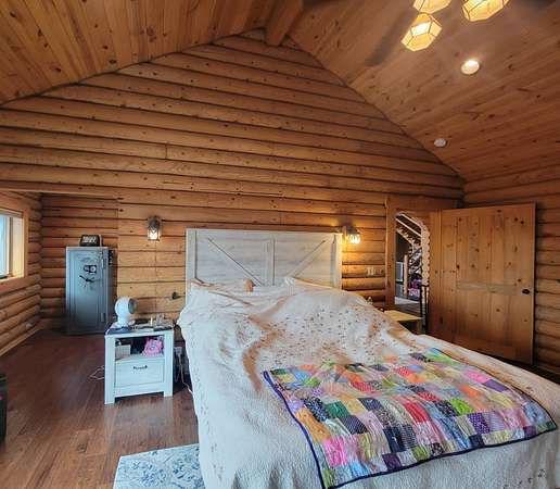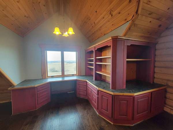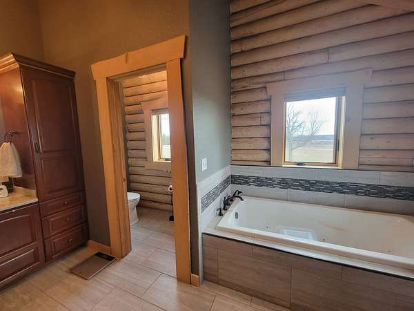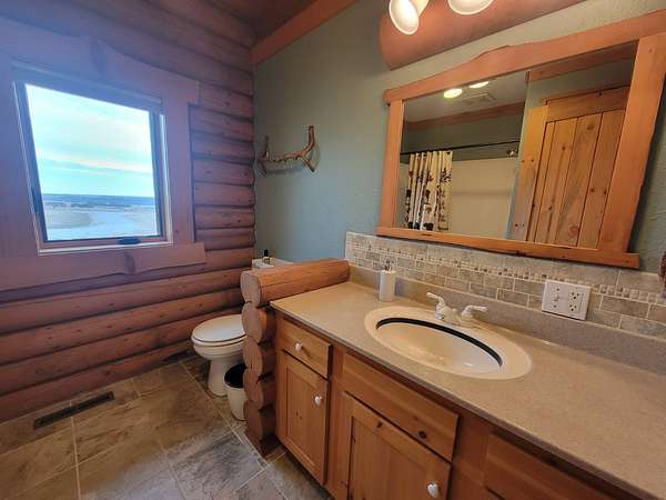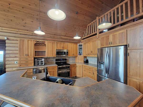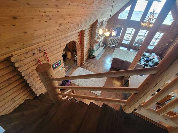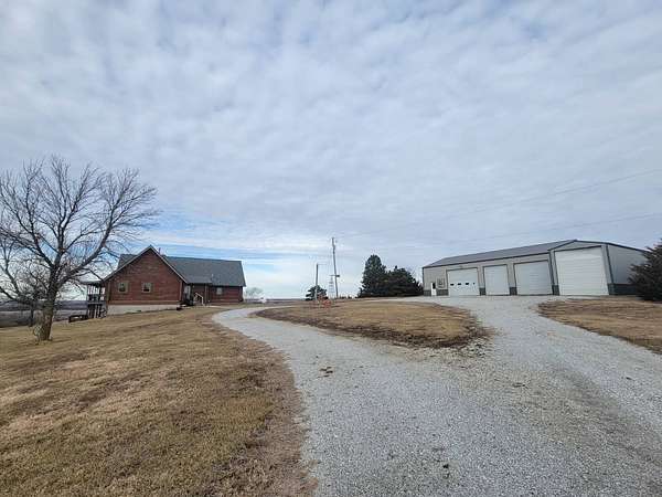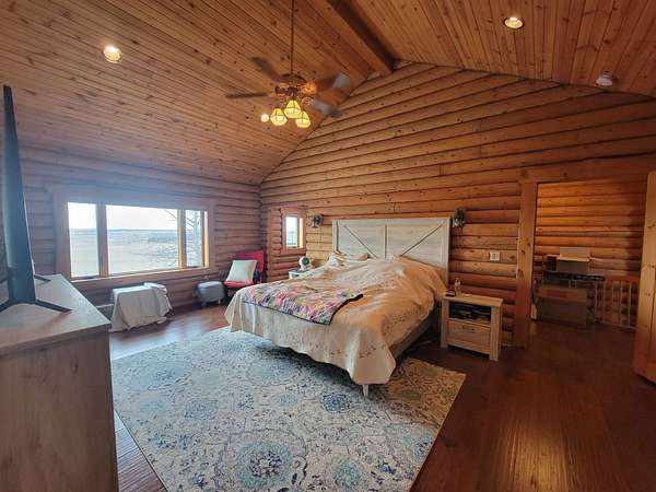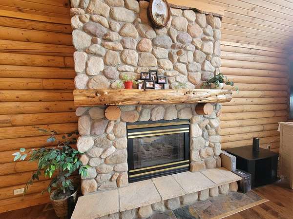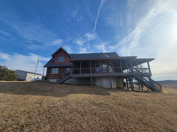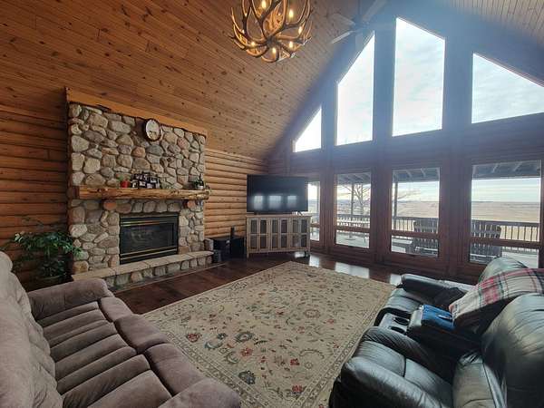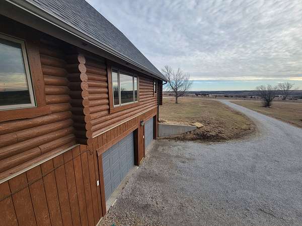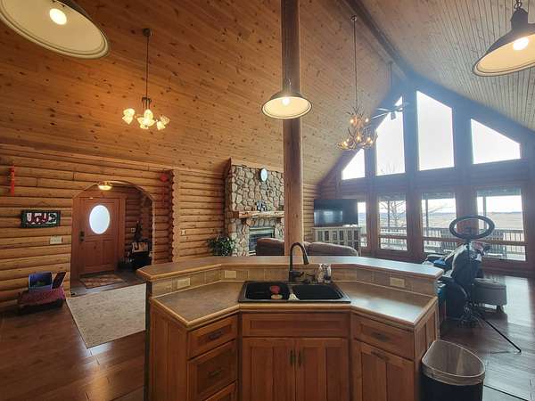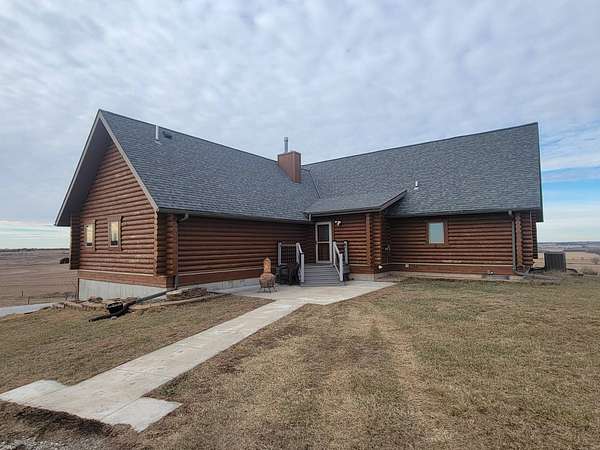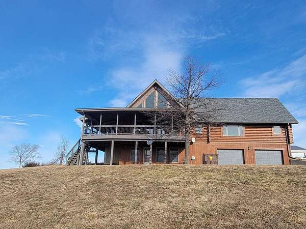 Stunning 3 BR, 3BA Log Cabin on 2.94 Acres built in 1997, no gravel roads! Built in garage 26x22. Large outbuilding 60x30 built in 2010 with half concrete (14x48), electricity and auto garage door opener, plus an RV storage building 12x45 built in 2014. House has a beautiful 16x24 Loft with built-in cabinetry, wrap around covered deck on the south & east sides - gorgeous country views! Main level offers engineered hardwood floors, Living room with beautiful 21' vaulted ceilings and propane fireplace! Open to kitchen with beautiful cabinetry, slow close, all appliances are included. Dining nook, Primary bedroom with large WIC, reading/nursery nook & attached bathroom with walk-in tiled shower, separate jetted tub, dual sinks with quartz countertops. 2nd Bedroom on main level, also with WIC, 2nd Full bathroom, Main floor laundry with sink and storage. Lower level offers a large Family room/Rec room, 3rd Bedroom, 3rd bathroom, Office/Hobby room with built-ins, and storage room. Basement walks out to the south with deck above. Basement also has access to the 22x26 built-in garage. Propane furnace & Central Air and water softener new 2015 - Dual zoned, New Roof with high impact shingles 2017, Some windows replaced 2018. Exterior solid pine log, stained in 2018. Water heater new 2020. Rural Water. Taxes $3,863/year. This home is stunning! Don't miss this opportunity! Qualified buyers only please!