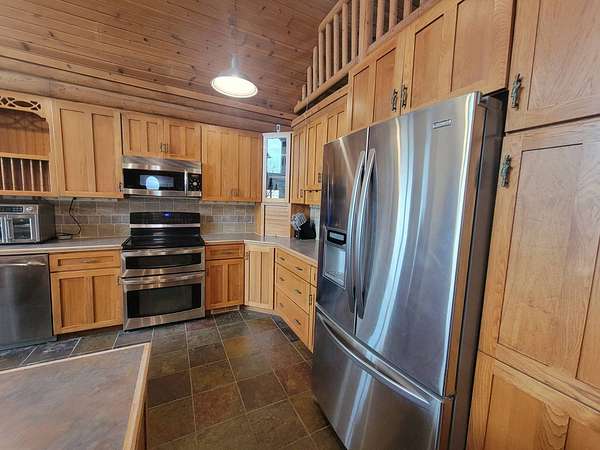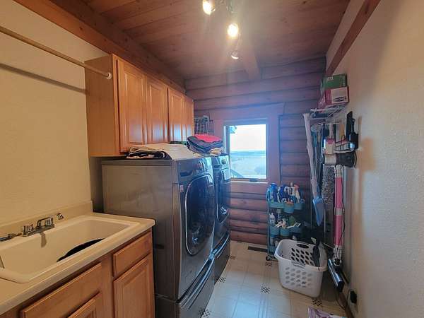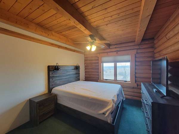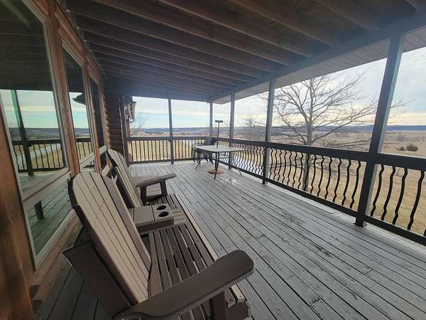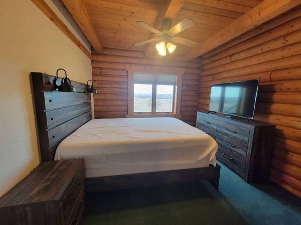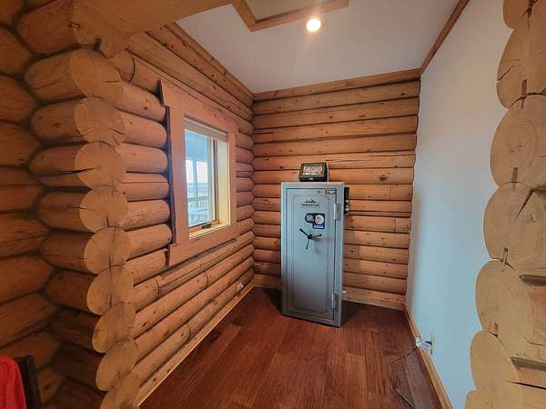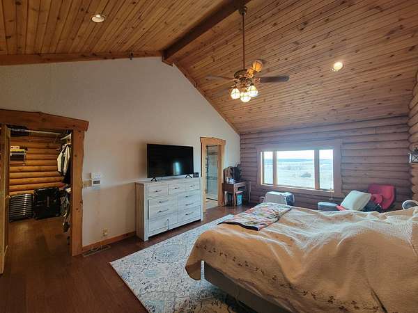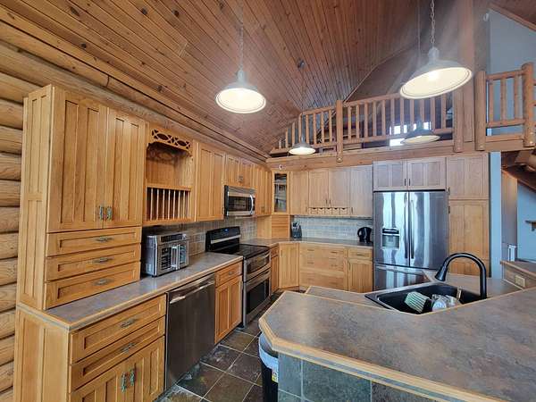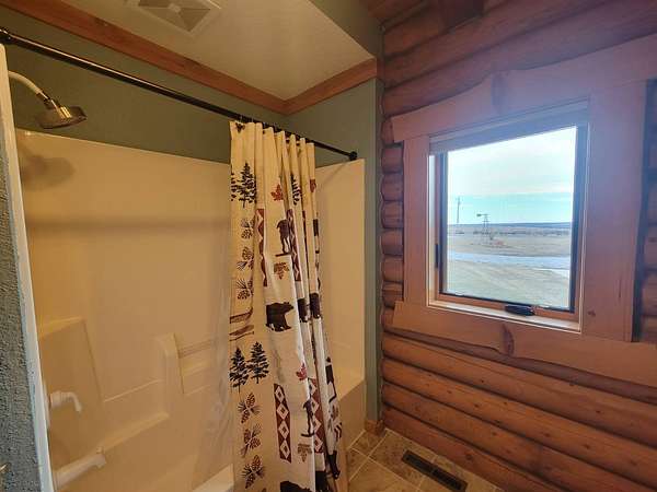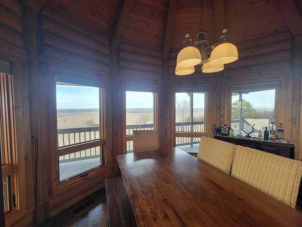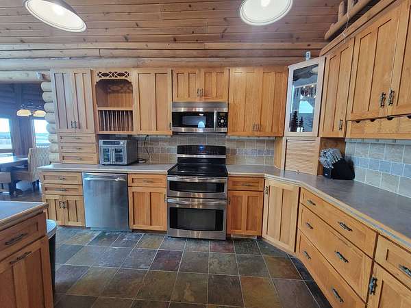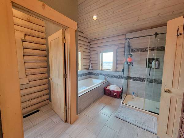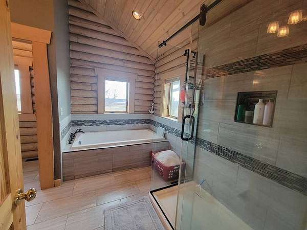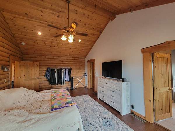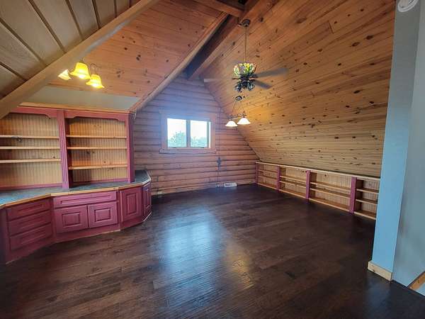 Stunning 3 BR, 3BA Log Cabin on 2.94 Acres built in 1997, no gravel roads! Built in garage 26x22. Large outbuilding 60x30 built in 2010 with half concrete (14x48), electricity and auto garage door opener, plus an RV storage building 12x45 built in 2014. House has a beautiful 16x24 Loft with built-in cabinetry, wrap around covered deck on the south & east sides - gorgeous country views! Main level offers engineered hardwood floors, Living room with beautiful 21' vaulted ceilings and propane fireplace! Open to kitchen with beautiful cabinetry, slow close, all appliances are included. Dining nook, Primary bedroom with large WIC, reading/nursery nook & attached bathroom with walk-in tiled shower, separate jetted tub, dual sinks with quartz countertops. 2nd Bedroom on main level, also with WIC, 2nd Full bathroom, Main floor laundry with sink and storage. Lower level offers a large Family room/Rec room, 3rd Bedroom, 3rd bathroom, Office/Hobby room with built-ins, and storage room. Basement walks out to the south with deck above. Basement also has access to the 22x26 built-in garage. Propane furnace & Central Air and water softener new 2015 - Dual zoned, New Roof with high impact shingles 2017, Some windows replaced 2018. Exterior solid pine log, stained in 2018. Water heater new 2020. Rural Water. Taxes $3,863/year. This home is stunning! Don't miss this opportunity! Qualified buyers only please!