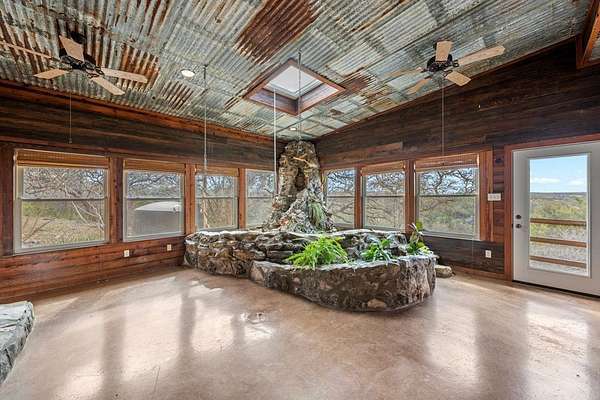 Experience the epitome of Hill Country living with this expansive rock home nestled on over 13 acres in the coveted Guadalupe Ranch Estates of Hunt, TX. Boasting panoramic views of the surrounding hills, this residence offers a harmonious blend of space and comfort. It features 3 generously sized bedrooms and 3 full bathrooms to accommodate family and guests with ease. Beyond the main living areas, the home includes an office, a cozy den featuring a fireplace, two flexible rooms adaptable to your needs, and a charming garden room perfect for plant enthusiasts. Relish breathtaking sunsets from the open patio, where the expansive views create a serene backdrop for evening relaxation or entertaining. A circular driveway leads to a spacious 2-car garage equipped with an additional workshop area, ideal for projects and storage. Three water catchment tanks are strategically installed to efficiently maintain exterior landscaping and gardens. Guadalupe Ranch Estates enhances Hill Country lifestyle with exclusive amenities, including a Deep Water Park, a Shallow Water Park & an Interior park. Embrace the tranquility and beauty of Hill Country living in this exceptional property.