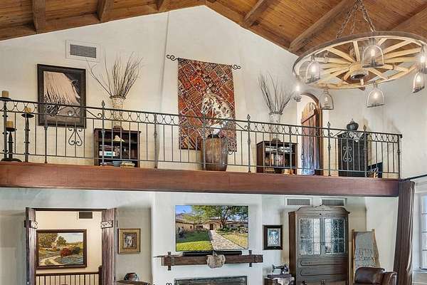 - Built-In Features, Built-In Wine Cooler, Cathedral Ceiling(s), Cedar Closet(s), Chandelier, Decorative Lighting, Double Vanity, Eat-In Kitchen, Flat Screen Wiring, In-Law Suite Floorplan, Kitchen Island, Loft, Multiple Staircases, Natural Woodwork, Open Floorplan, Pantry, Second Primary Bedroom, Walk-In Closet(s), Wet Bar