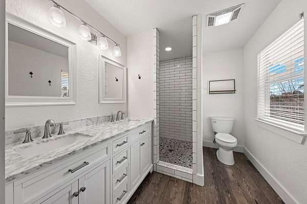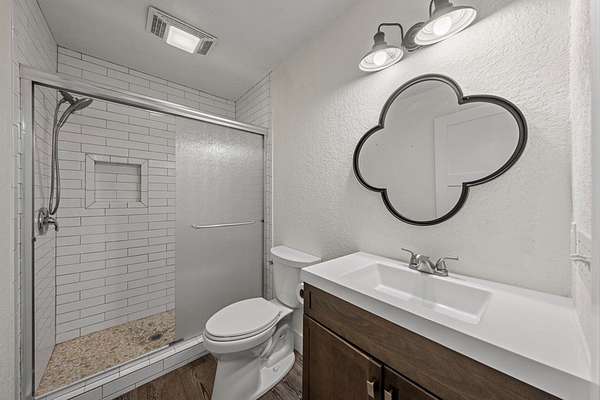 - High Ceilings, Shower Stall, Shower/Bath Combo, Walk-In Closet(s)
