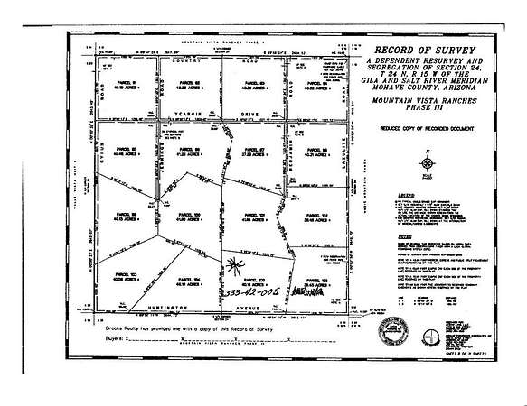 PARCEL 105 (MOUNTAIN VISTA RANCHES PHASE III) AS SHOWN ON RS 20/8 G 10/6/2000 2000-54860 CONT 40.14 ACRES 333-42-001 (333-42-002 TH RU 007) 2003 TAX ROLL