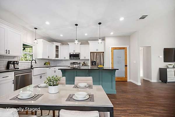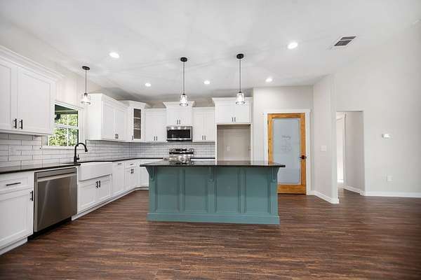 Est $2,503/moBeautiful New Construction with Acreage! Come see this custom 3bedroom, 2 bath new construction on 1.79 acres! Walk into high vaulted ceilings, open floor plan, large living room with fireplace, split floorplan, large kitchen with island and pantry, granite countertops, stainless steel appliances and so much more! Great Primary bedroom with massive on suite bathroom and large walk in closet! Enjoy a cup of coffee on the oversized, covered back porch. All that is missing is YOU!