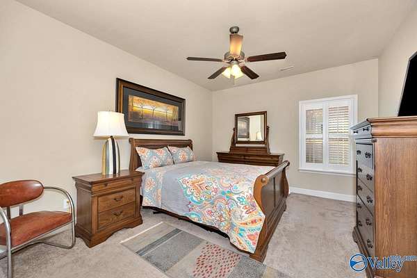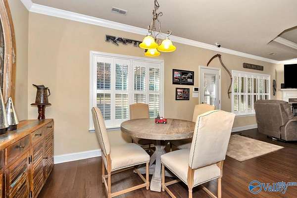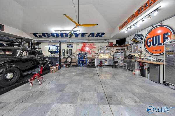 Est $2,685/moA charming 3-bedroom, 2-bath home with hardwood floors in the main living area and carpeted bedrooms. Plantation shutters are featured throughout. The living room offers a gas fireplace and trey ceilings. The kitchen includes granite countertops and a large pantry. The primary bedroom boasts a 10' trey ceiling and an ensuite with a whirlpool tub. Situated on 1/2 acre with a privacy-fenced yard, this property includes a 4-car detached garage, an automobile connoisseur's dream, over 1200 sq ft, heated and cooled, plus a 3-car attached garage. Community pool and amenities included.