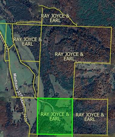 From Huntsville, head south on Highway 23 South for 3.9 miles, turn left onto Highway 74 East for 4.9 miles. Turn right onto Madison 3275 for 2.0 miles, turn left onto Madison 3150 to enter the property driveway. Home will not be seen from the county road.