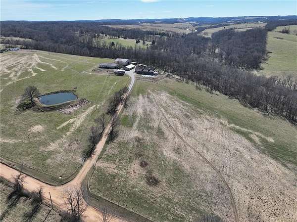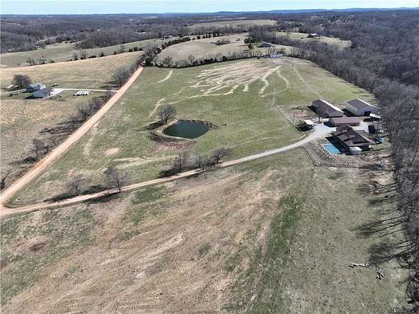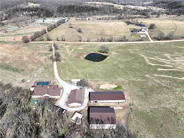 Welcome to your private Ozark retreat where space, versatility, and breathtaking scenery come together. Situated on 13+- fenced acres with views of the Ozark Mountains, this exceptional property offers three separate living structures, making it ideal for multi-generational living, rental income, guests, or a flexible live/work lifestyle. The primary residence spans 2,520 sq ft and features 3 bedrooms, 2 bathrooms, a spacious loft, a wood-burning fireplace, and an attached garage. A 768 sq ft apartment provides private living quarters with 1,024 sq ft attached garage storage, perfect for extended family, visitors, or income potential. The 36x75 barndominium offers 3 bedrooms, 2.5 bathrooms, and 864 sq ft attached car storage, delivering independence and functionality. Designed for both recreation and productivity, the property includes an in-ground swimming pool, a 50x60 shop building with basketball gym, a stock pond, and ample space for livestock, gardening, hobbies, homeschooling, or a home-based business.