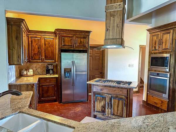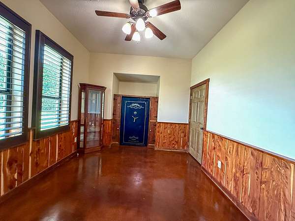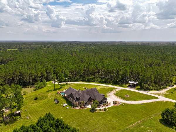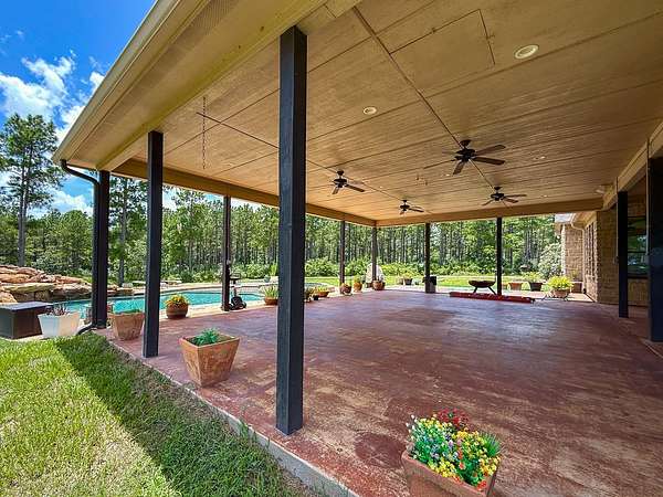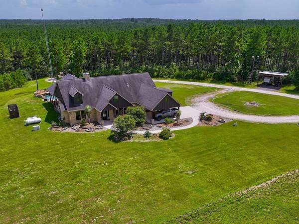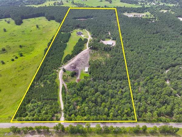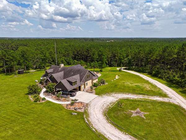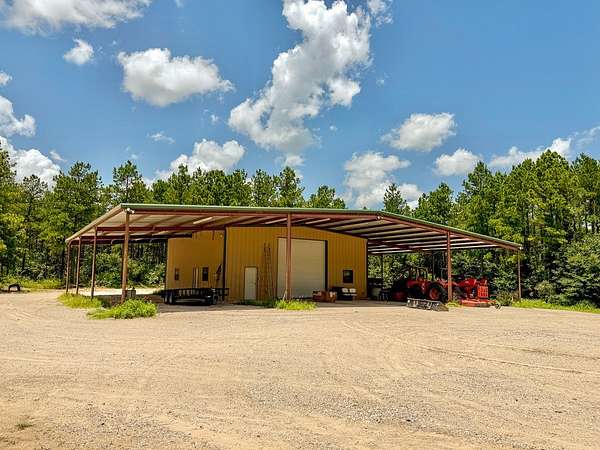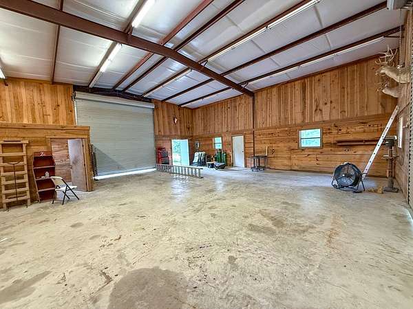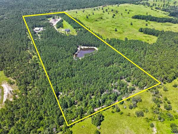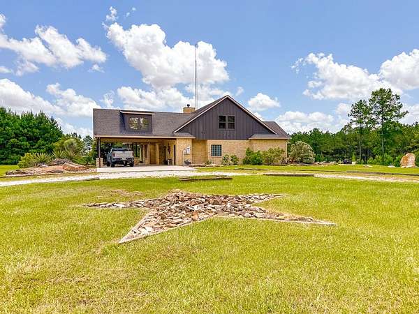 This 60-acre gated retreat in Huntsville, TX offers privacy, natural beauty, and business potential. The property includes rolling terrain, mature pine, trails, rock formations, and a seasonal creek. The 3,108 ft2 custom stone home features 3 beds, 3.5 baths, formal dining, large living with fireplace, optional 4th bed/office, and a luxe primary suite. Enjoy high-speed fiber internet, underground power, a 22 kW generator, and two propane tanks. Outdoor perks: pool with waterfall, hot tub, covered patio with outdoor kitchen, private lake stocked with fish, and a smokehouse. The event pavilion suits weddings or gatherings. A 1,600 ft2 shop includes drive-through doors, awnings, restroom, loft, and storage. Bonus: equipment awning, RV parking, and hunting setup with wildlife. Community water, ag exemption, and no restrictions make this ideal as a home, business, or venue--just minutes from Huntsville and close to Houston.
