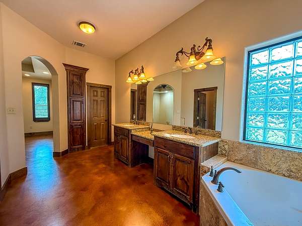 - Ceiling Fans, Double Vanity, Entrance Foyer, Fireplace, Granite Counters, High Ceilings, Kitchen Family Room Combo, Kitchen Island, Pantry, Programmable Thermostat, Separate Shower, Soaking Tub, Walk in Pantry