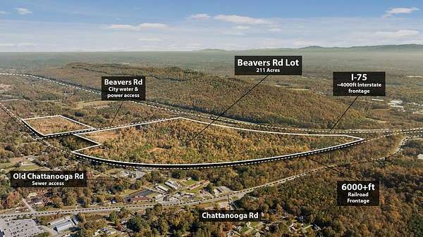 Strategic Interstate Location with Massive Frontage. Positioned just off I-75 at the Rocky Face exit, this premier tract offers unmatched interstate, railroad, and local road frontage. Sewer access is located on Old Chattanooga Highway near the church—approximately 600 feet from the property, across the railroad tracks. Use of Sewer will need to be confirmed by the buyer. Public water and power are available along Beavers Road. This property offers outstanding accessibility and visibility, featuring: Over 2,500 feet of frontage on Beavers Road Nearly 4,000 feet of frontage along I-75 More than 6,000 feet of frontage on the railroad line. Visibility and Location Advantages. Located near the Rocky Face exit, this property has prime exposure along I-75. Traveling southbound, (Cont...)