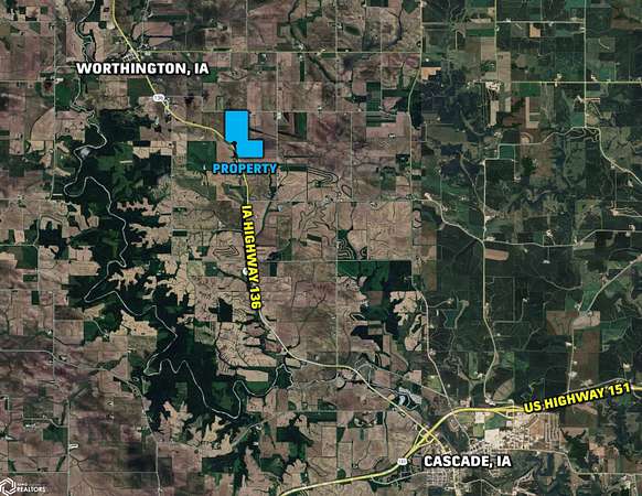 Mark your calendar for Thursday, February 12, 2026, at 10 AM! Representing CJK Heritage, LLC in the sale of their farm located just south of Worthington, Iowa, and north of Cascade, Iowa. The farm consists of 176.03 acres m/l and will be offered as two individual tracts. The tracts have great access off Iowa Highway 136 and Johns Creek Road, offering easy access to surrounding grain markets. These nearly 100% tillable tracts have an average CSR2 soil rating of 74.9, well above the Dubuque County average CSR2 soil rating of 49.2. The primary soil types include top-producing Ostrander loam & Terril loam. These tracts are located in Section 4 of Cascade Township, Dubuque County, Iowa. These high-quality farmland tracts are located in a strong farming community and would make great additions to an existing farming operation or serve as investments for buyers looking to diversify their portfolios or hedge against inflation. Several grain marketing outlets are located nearby, including the L&S Ag grain elevator in Worthington and the Big River United Energy ethanol plant in Dyersville-both easily accessible via county and state paved highways. The farms will be open for the 2026 growing season. Tract 1: 110.67 acres m/l, including an estimated 103.28 acres currently farmed, with an average CSR2 soil rating of 75.8. Tract 2: 65.36 acres m/l, including an estimated 59.97 acres currently farmed, with an average CSR2 soil rating of 73.2.