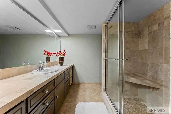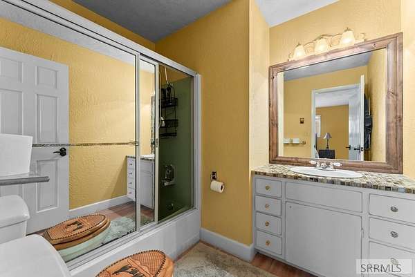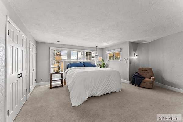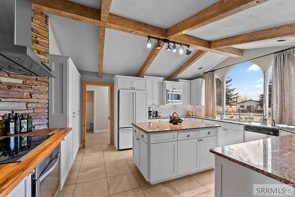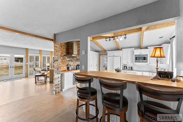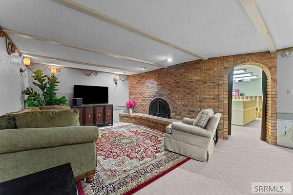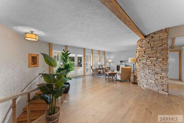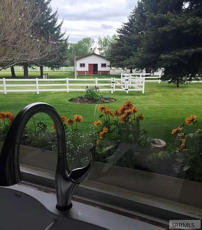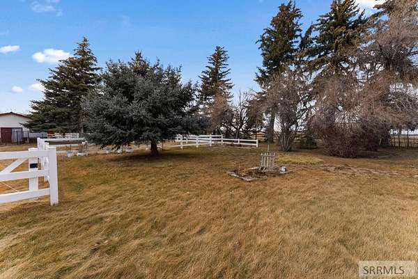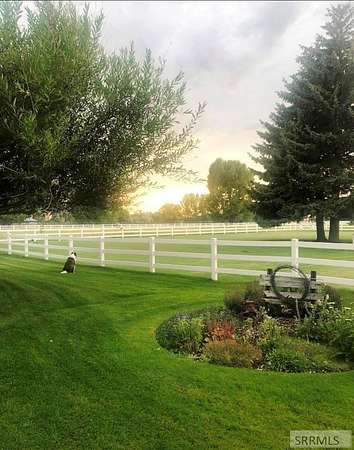 Hard-to-find horse property in Idaho Falls with over 7 beautiful acres, fully fenced with classic white 3-rail fencing and mature pine trees for privacy and curb appeal. This timeless brick home offers 4 bedrooms and 5 bathrooms with warm white oak floors, plantation shutters, and large windows that bring in natural light. The living room and kitchen are anchored by a stunning rock wall and cozy wood-burning fireplace - perfect for Idaho winters. The updated kitchen features granite countertops and generous cabinet space. The spacious primary suite includes four closets and a spa-style bathroom with a Japanese soaking tub. Downstairs, the fully finished basement offers a second fireplace, wet bar, family room, library, large hobby space, and separate exterior access. Outside you'll find everything you need for true country living: barn with 4 stalls and corrals, two storage sheds, covered front porch and back patio, and room to ride and roam. The oversized two-car garage includes extra storage and a 220 outlet. Enjoy space, privacy, and the ranch lifestyle - just minutes from town.