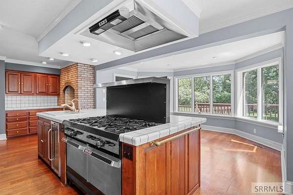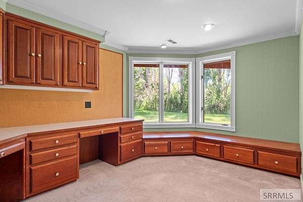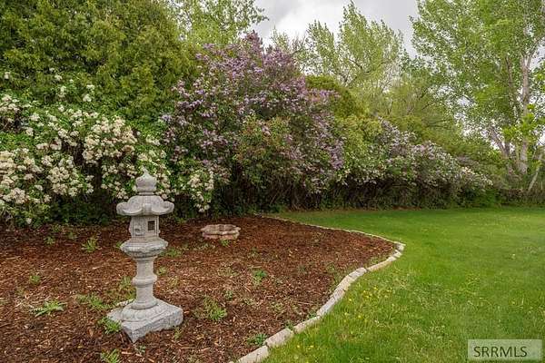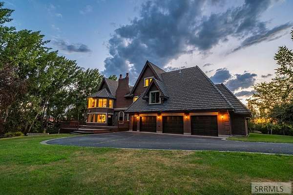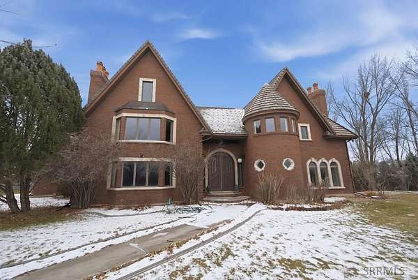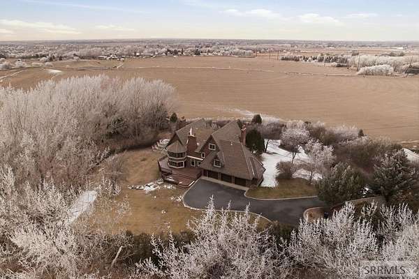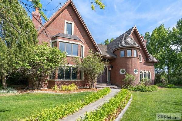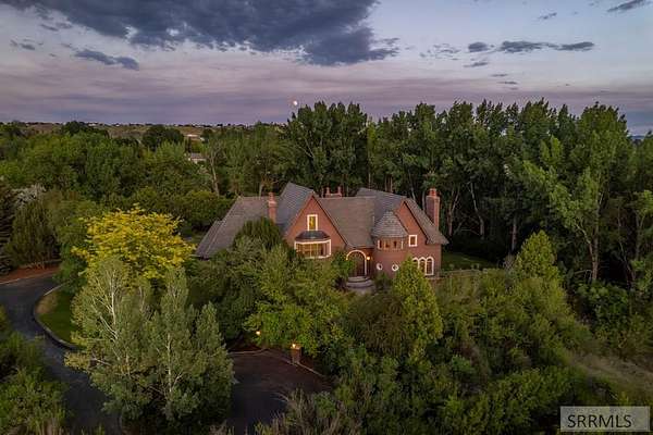 Discover timeless elegance and total seclusion in this exceptional 4-bedroom, 4-bath custom chateau nestled on over 5.7 beautifully wooded acres in Idaho Falls. Surrounded by more than 500 mature trees and offering sweeping views of the valley, this estate combines architectural charm with rare privacy. A striking copper front door sets the stage for the craftsmanship and unique details found throughout the home. Inside, you'll find a dramatic spiral staircase, four fireplaces, formal dining room, wet bar, and spacious living areas designed for both grand entertaining and quiet retreat. The expansive kitchen is a dream for culinary enthusiasts, featuring an oversized range, built-in ice machine, wine refrigerator, and indoor grill-ideal for preparing meals and hosting gatherings. Outdoors, secret gardens are artfully woven into the landscaping, creating a sense of enchantment and discovery. With water rights, the grounds are ideal for gardening and to simply enjoy the natural beauty of the established property. Additional amenities include a 3-car attached garage, a second garage 20x24, 50x40 shop, 20x50 greenhouse, and a garden shed. Elegant, private, and rich with possibility, this Idaho Falls chateau is more than a home-it's a legacy.