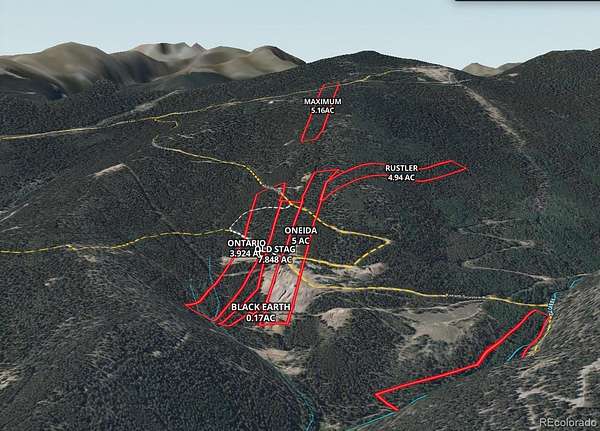 These 5 clustered and contiguous parcels totaling roughly 21.882 acres offer the opportunity to combine a larger site featuring expansive mountain views with historical elements of the rich mining past. There are no known building improvements currently upon these parcels, but they do have some evidence of previous mining activities, adits and shafts. The parcels are mostly densely forested and sloping with a smaller area of tailings upon the lower reaches of the "Onieda" (5ac) and "Old Stag" (7.848ac) parcels where the forest road approaches the properties. The upper reaches can be accessed by continuing on the Forest Road or utilizing another narrow and steep 2 track trail that crosses and loops back upon the "Ontario" (3.924ac). The smaller "Black Earth" (.17ac) is a small piece on the lower end, and the "Rustler" (4.94ac) is a narrow strip off the top. The Trail Creek Area Mining Claims just outside the Rocky Mountain Gateway town of Idaho Springs, Colorado are a collection of 7 individual claims totaling 32.042 acres; with two single parcel offerings (5 ac & 5.16 ac) and these remaining 5 contiguous claims offered together at 21.882 acres. With the lower parcel located within 1/2 mile of the county maintained secondary roadway of Trail Creek Rd (road base), the parcels are then interconnected via a web of forest/county 4WD roads and tracks. A 4X4 enthusiasts dream; the network connects through to a myriad of rural mountain destinations including the old Lamartine townsite, Chicago, Ute & Cascade Creeks, Woodchuck Peak, Griffith Mountain, and the Saxon Mountain Road leading to Georgetown. For 3 generations the ownership family has enjoyed these lands as a place to retreat, camp and recreate; from the lovely trickling stream of Trail Creek upon the “Rustler MS” parcel to the expansive rocky mountain views offered from the middle clustered parcels and the high vantage point of the “Maximum” parcel.