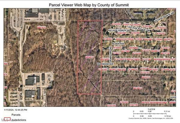Est $1,376/moUnique opportunity to own appox. 12.5 residential acres in West Akron. At the end of quiet Idlewood Ave. & Alden Aves., this large piece of vacant residential land gently rolls and has a small creek that runs through it in a 'C' shape. Public utilities available. There are 4 sewer manholes on the eastern property line from which to likely tie into city sewer. Gas well on property, current royalty is around $780/yr will pass to new owner. Close to shopping, dining, highways. Heavily wooded privacy awaits!