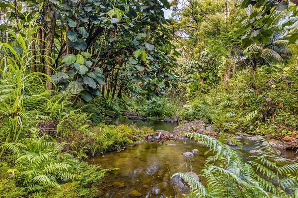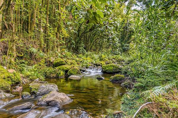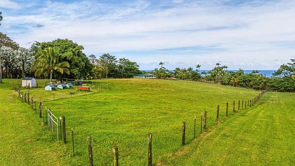 Park-like grounds, sweeping ocean, Mauna Kea and pasture views, accessible stream frontage, paved road access, and fencing-what more could you ask for in a Hamakua Coast property? This exceptional acreage is bordered on two sides by streams: a year-round perennial stream to the south, and a seasonal stream to the north featuring an impressive waterfall and natural pools. Several access gates lead to established footpaths, making it easy to explore, relax, and enjoy the water features firsthand. An agricultural support building is already in place, offering a garage, secure storage, and interior rooms that can serve as a functional base of operations while developing the primary homesite. The structure is near completion; the next owner may install the water system of their choosing to finish the setup to their preference. The property also includes a fenced paddock with small shelters-ideal for animals or a start to your agricultural vision. The outer boundary is fenced with a combination of wire and electric lines, creating clearly defined zones for grazing, gardening, or future improvements. This property encapsulates the best of the Hamakua coast: rich, deep soil; ideal elevation just below 400' for growing; and easy access to the charming town of Honomu, home to local eateries, coffee, and boutiques. It is also just a short drive to the renowned Akaka Falls State Park, part of the Hamakua Heritage Corridor and one of Hawaii's most iconic natural wonders. This is a rare opportunity for those seeking to create a private secure estate, working homestead, or agricultural retreat with established infrastructure and exceptional natural features.